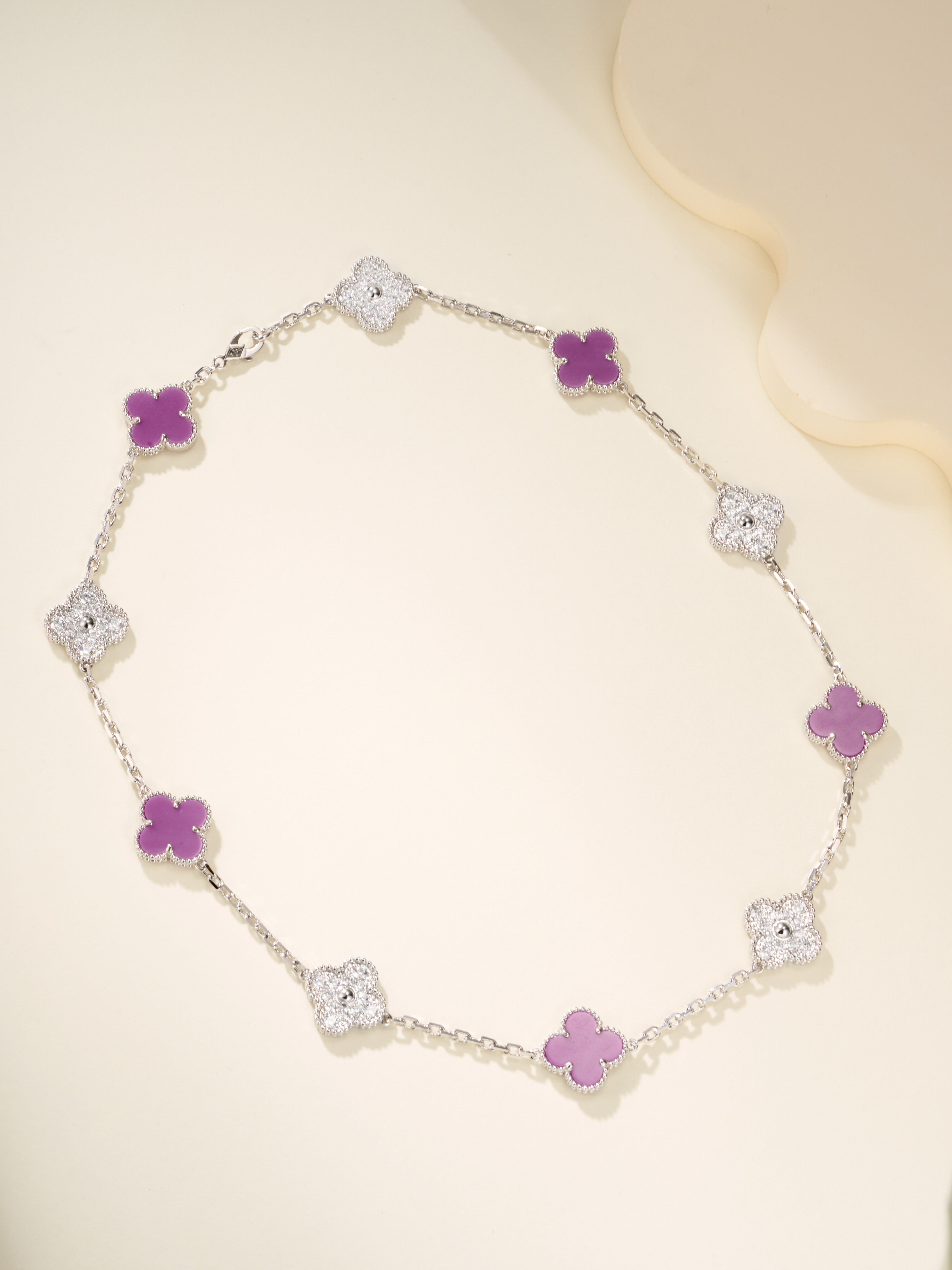 Ten flower diamond violet stone necklace