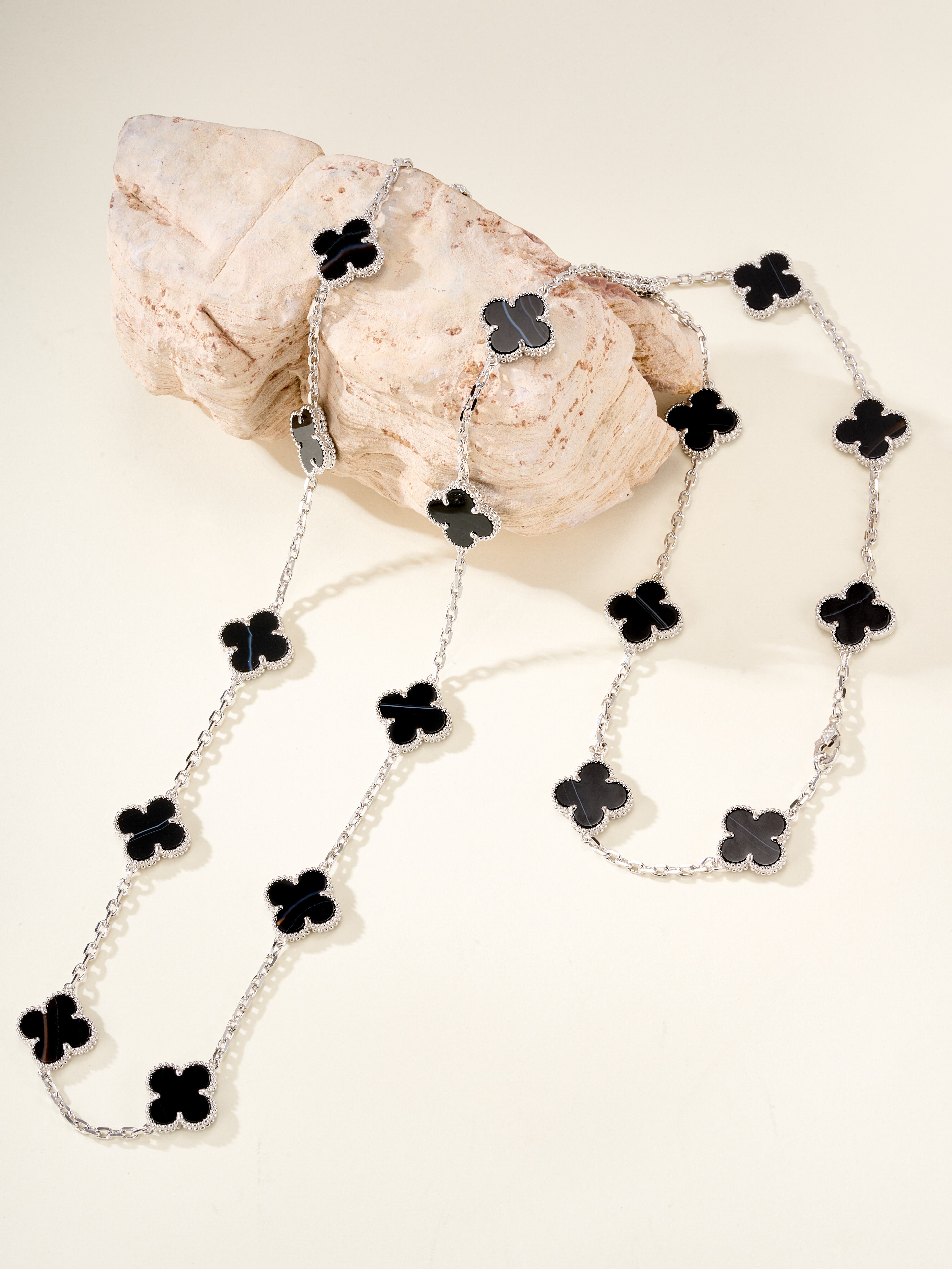 Five flower bracelet in white gold and black agate style