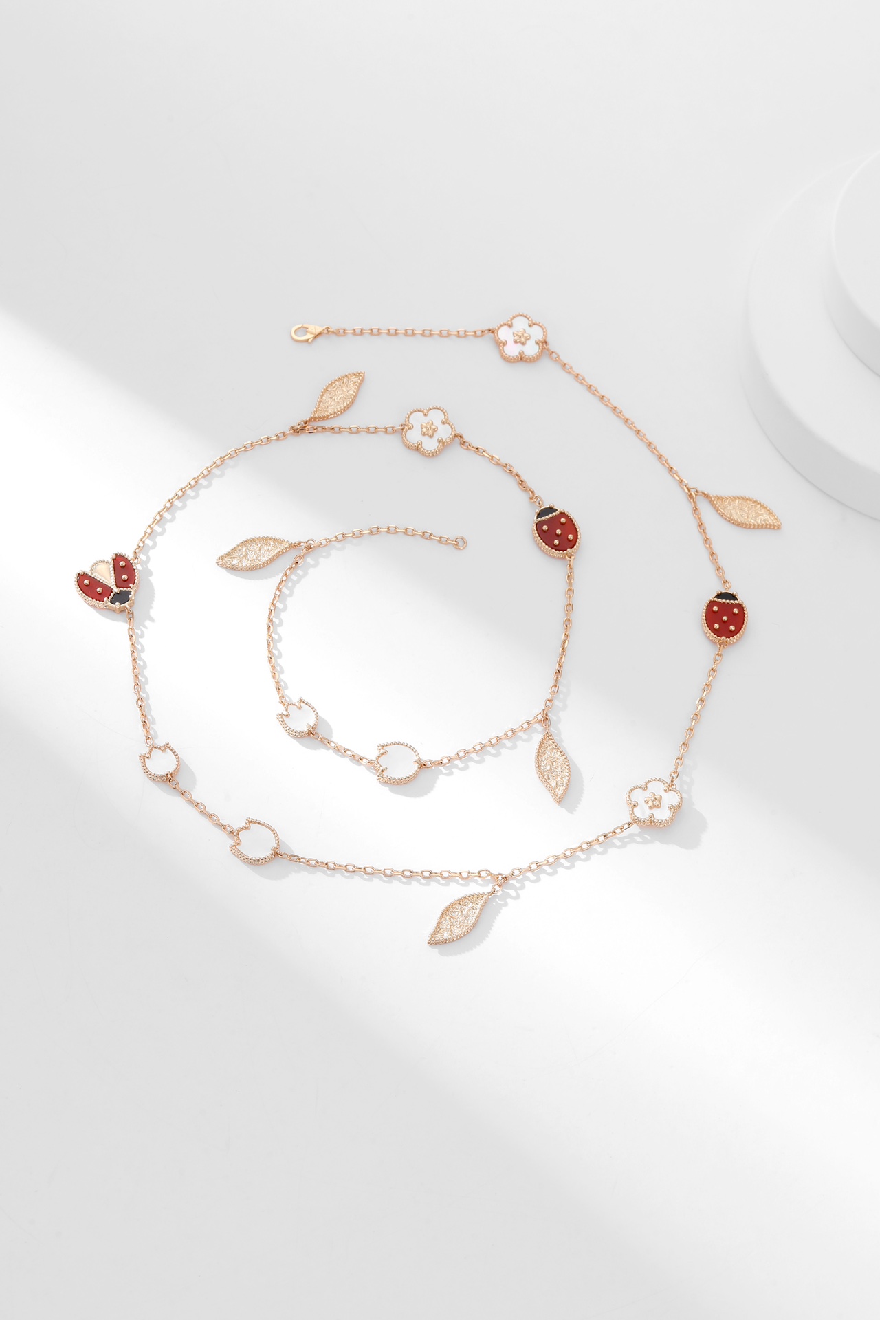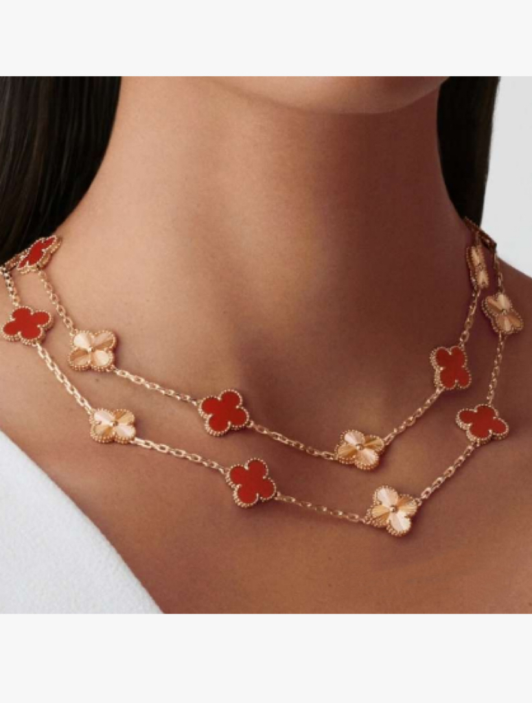 20 flower diamond red chalcedony rose gold necklace