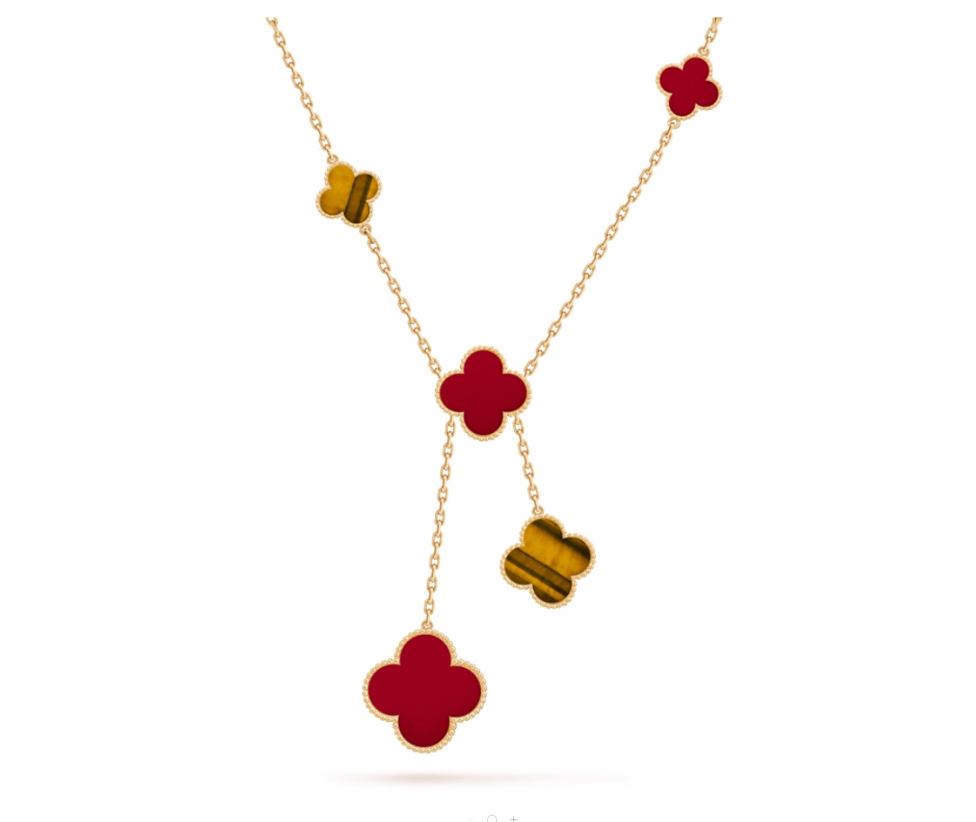 16 Pattern Size Four Leaf Clover Tiger Eye Stone Ruby Necklace