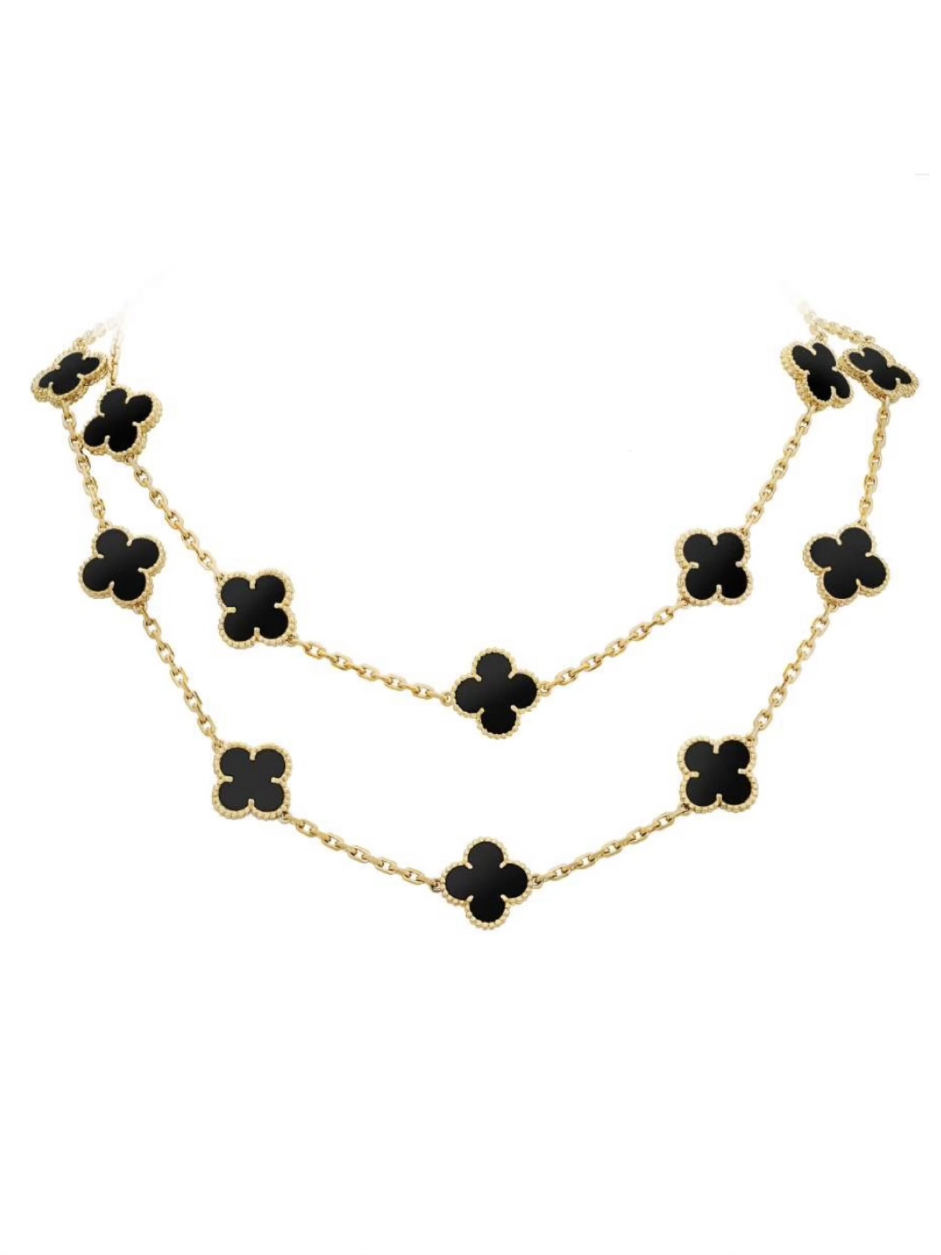 20 flower clover gold black agate necklace