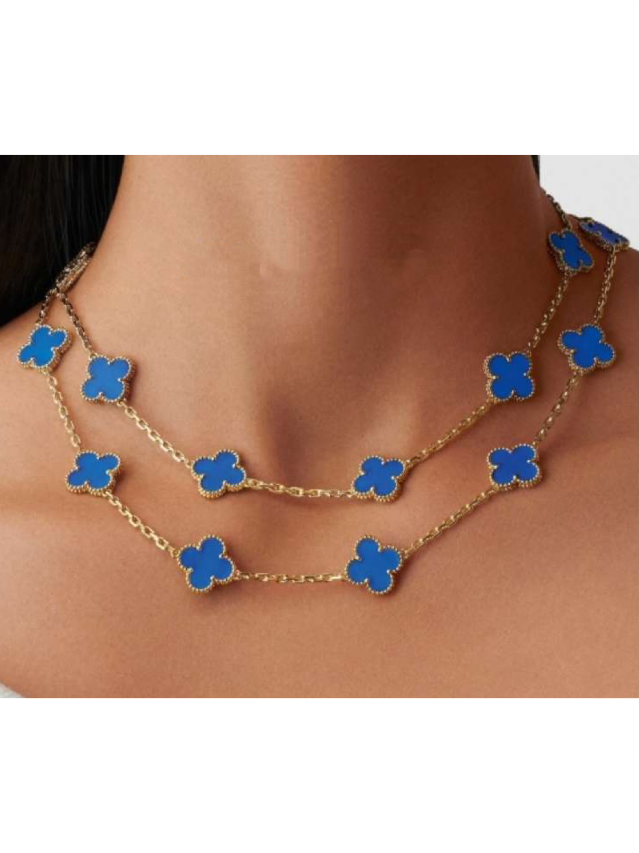 20 flower clover blue chalcedony necklace