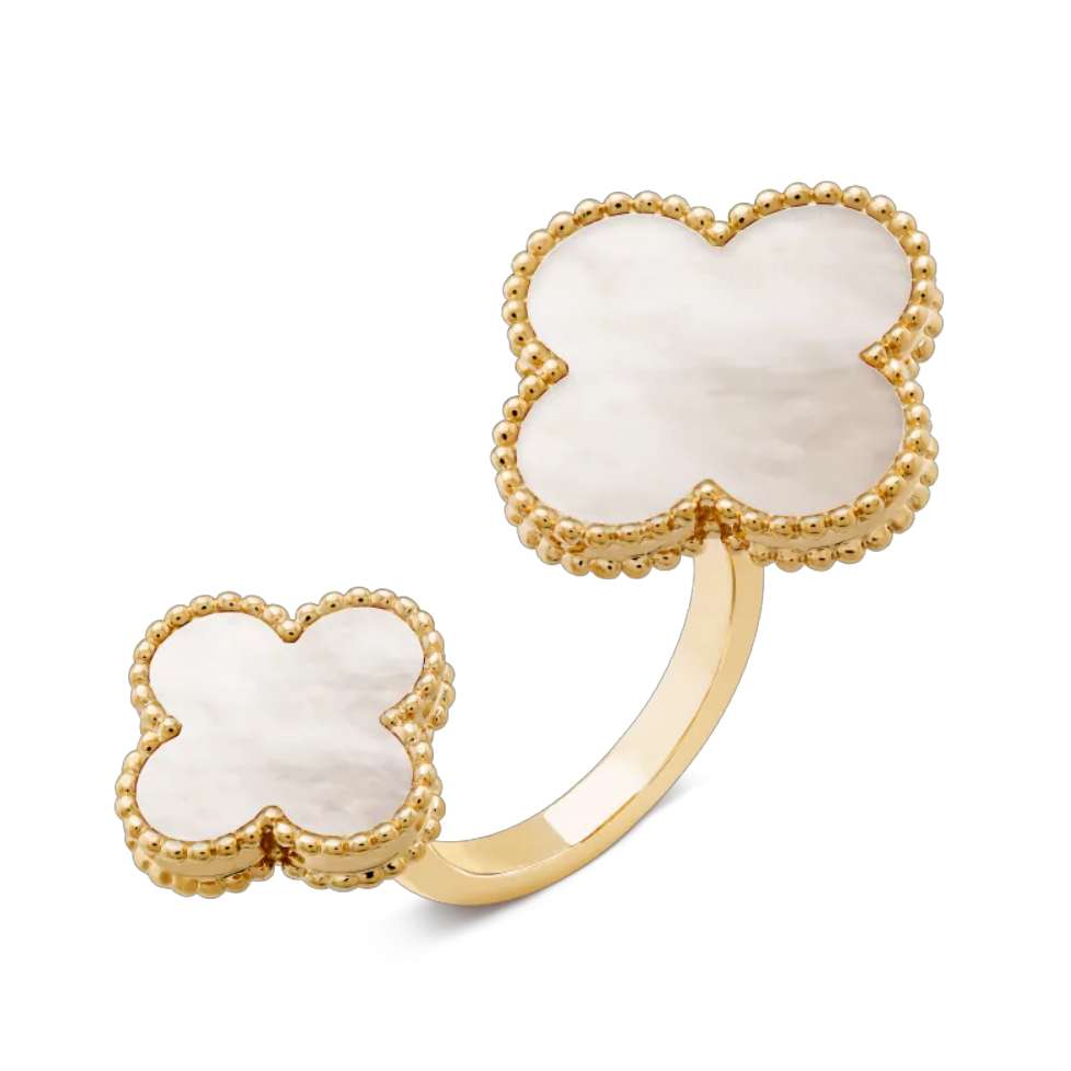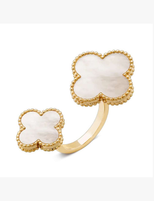 Four leaf clover natural stone open ring of different sizes