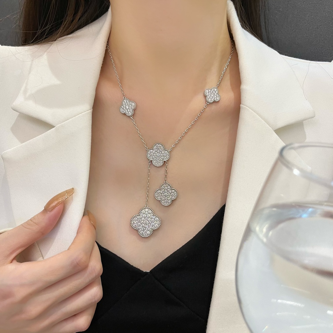 Alhambra Irregular 6-Flower Full Diamond Clover Necklace