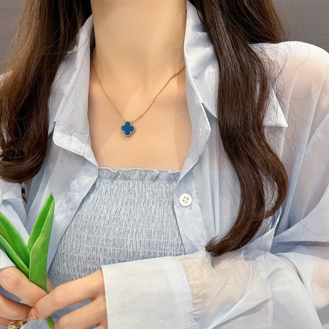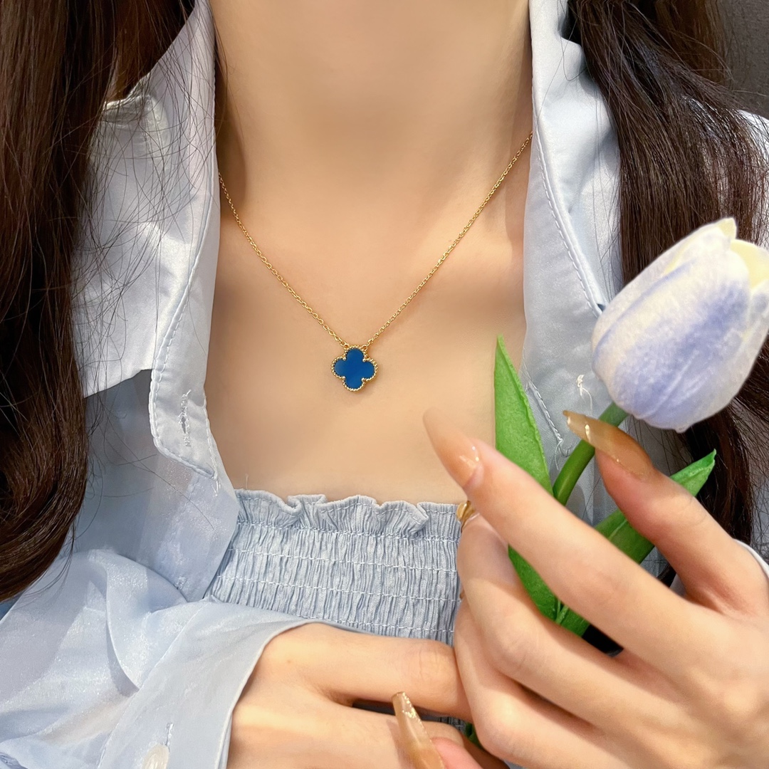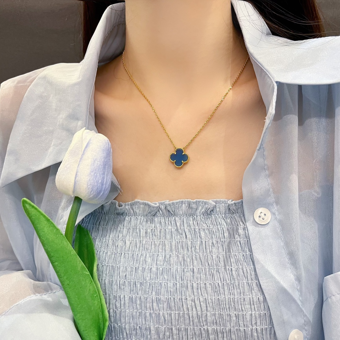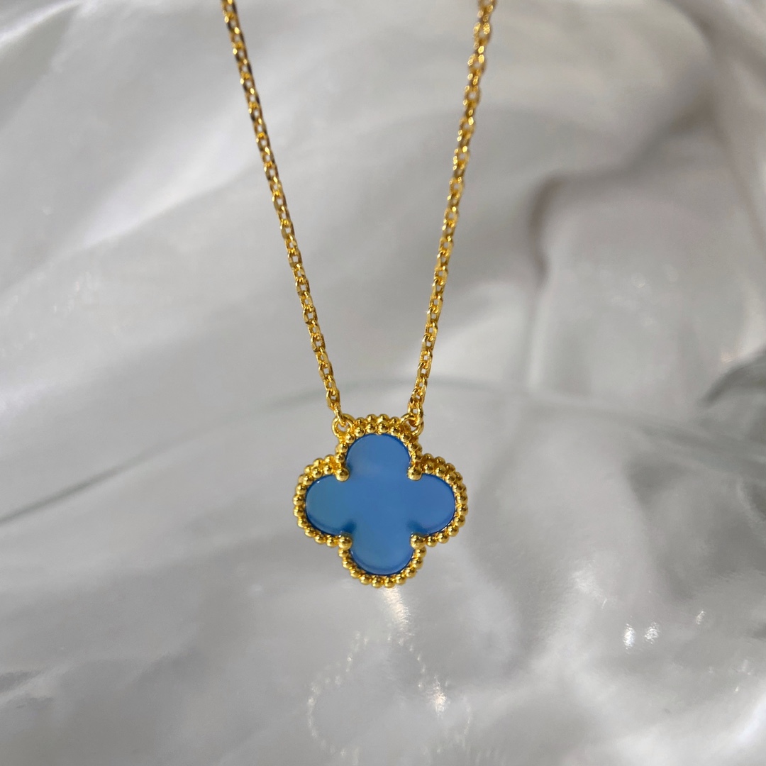 Classic single flower blue chalcedony necklace