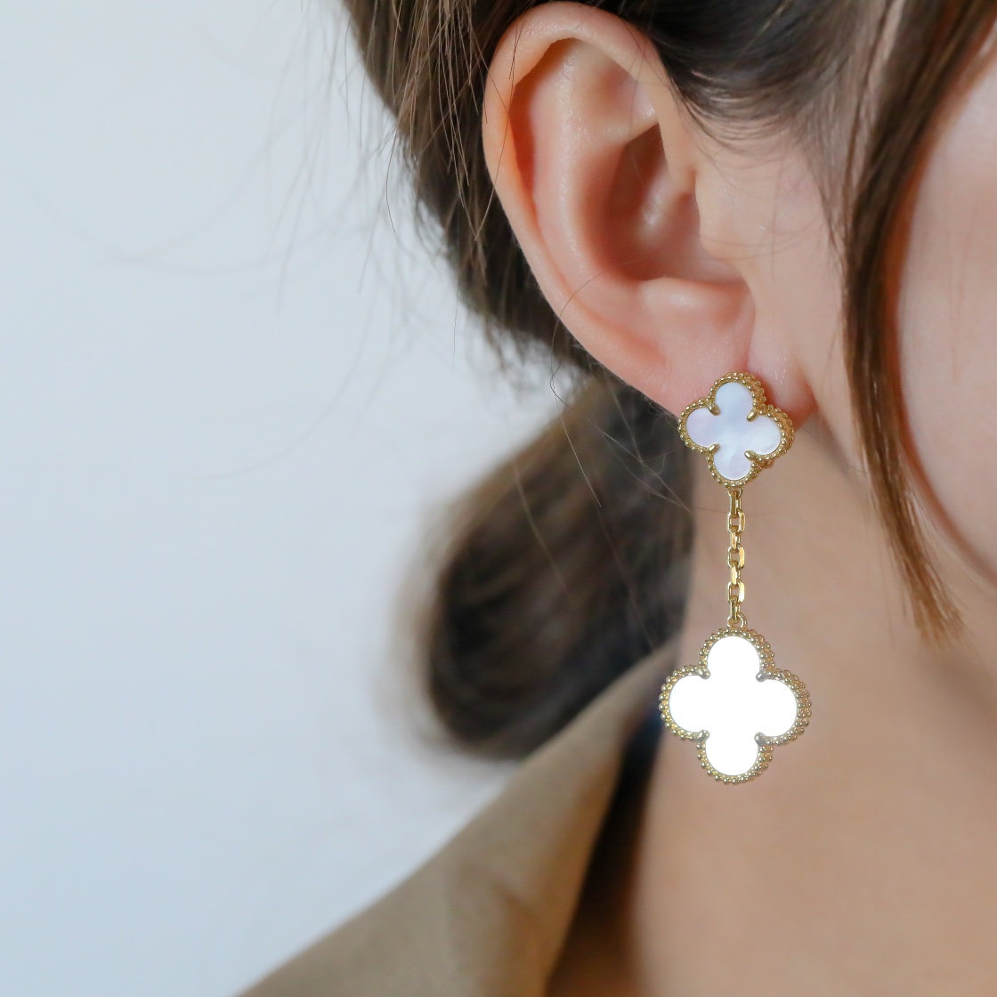 Clover Double Flower White Fritillaria Earrings