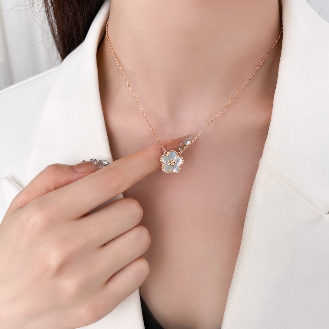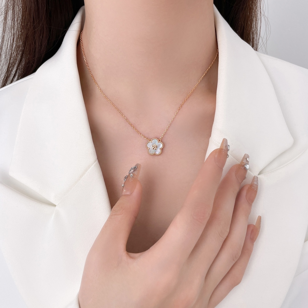 Lucky Spring Plum Blossom White Beimu Rose Gold Necklace