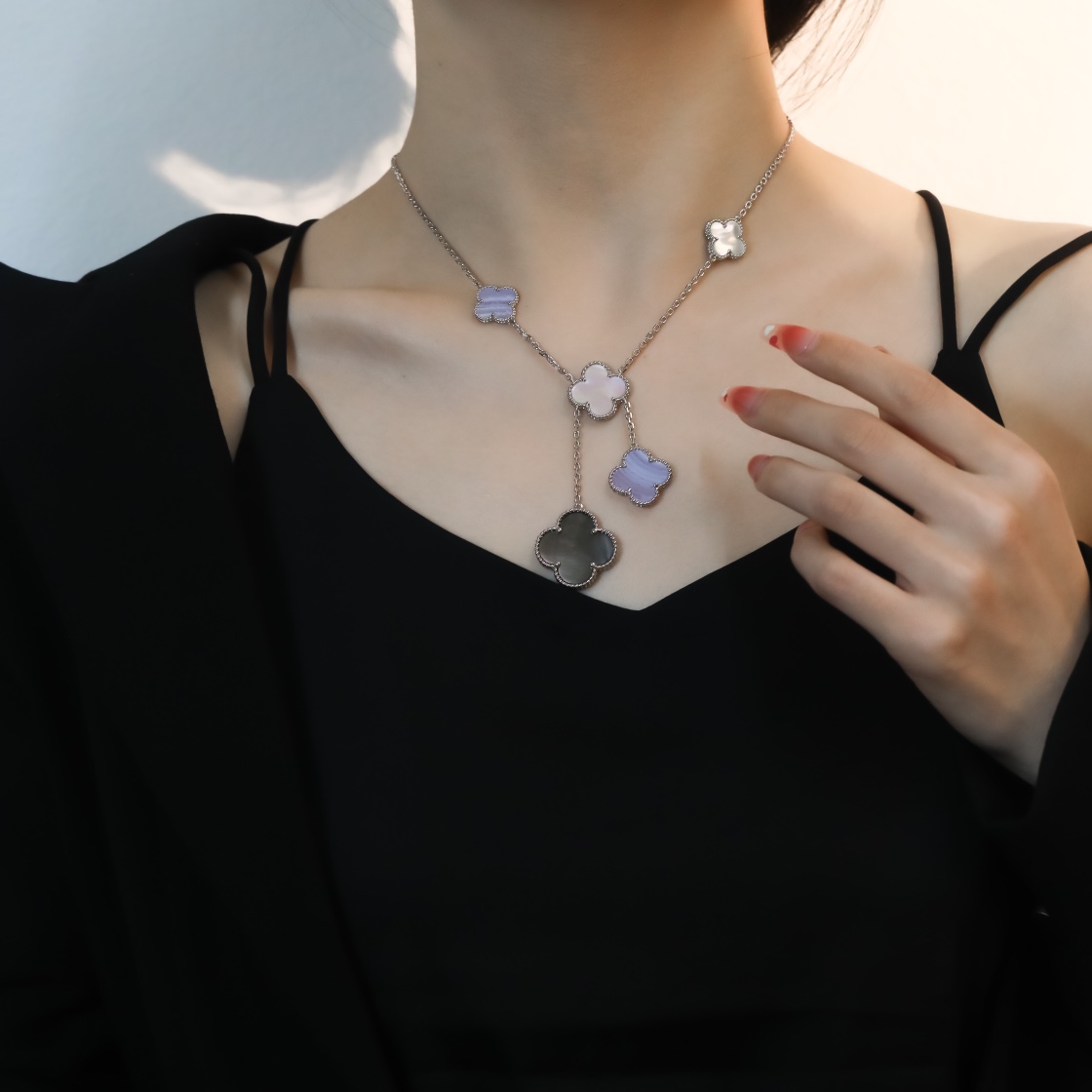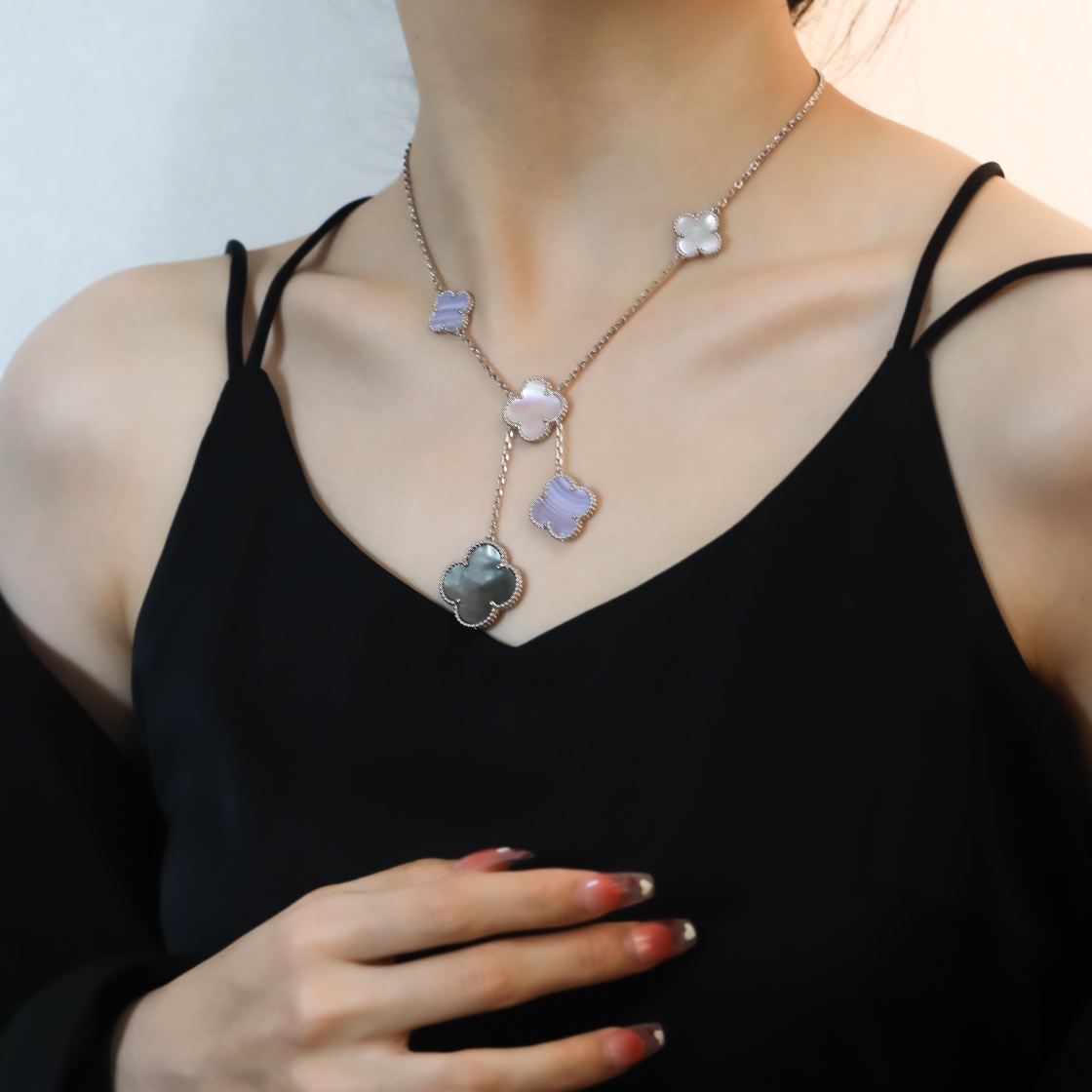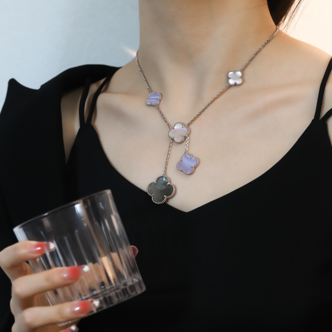 Magic Alhambra Six Flower Purple Jadeite Irregular Necklace