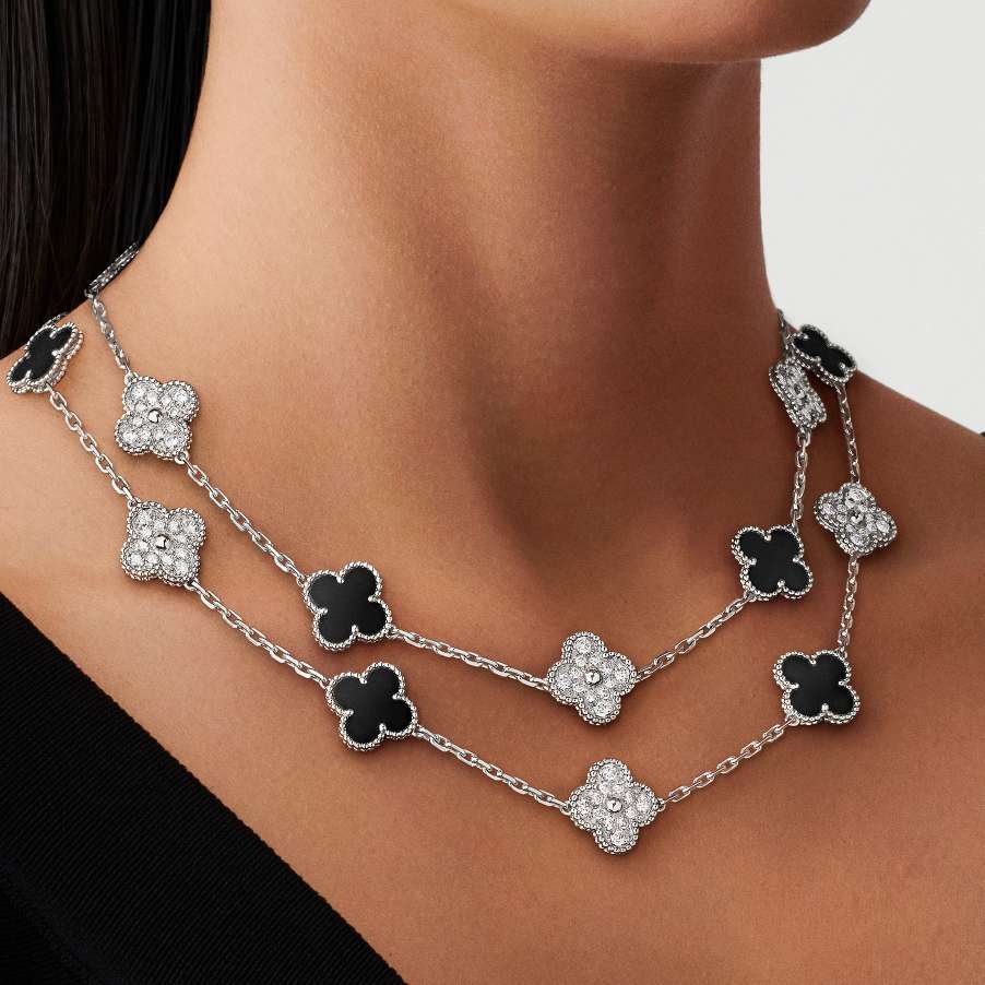 Vintage Alhambra 20 Black and White Diamond Set Panda Necklace