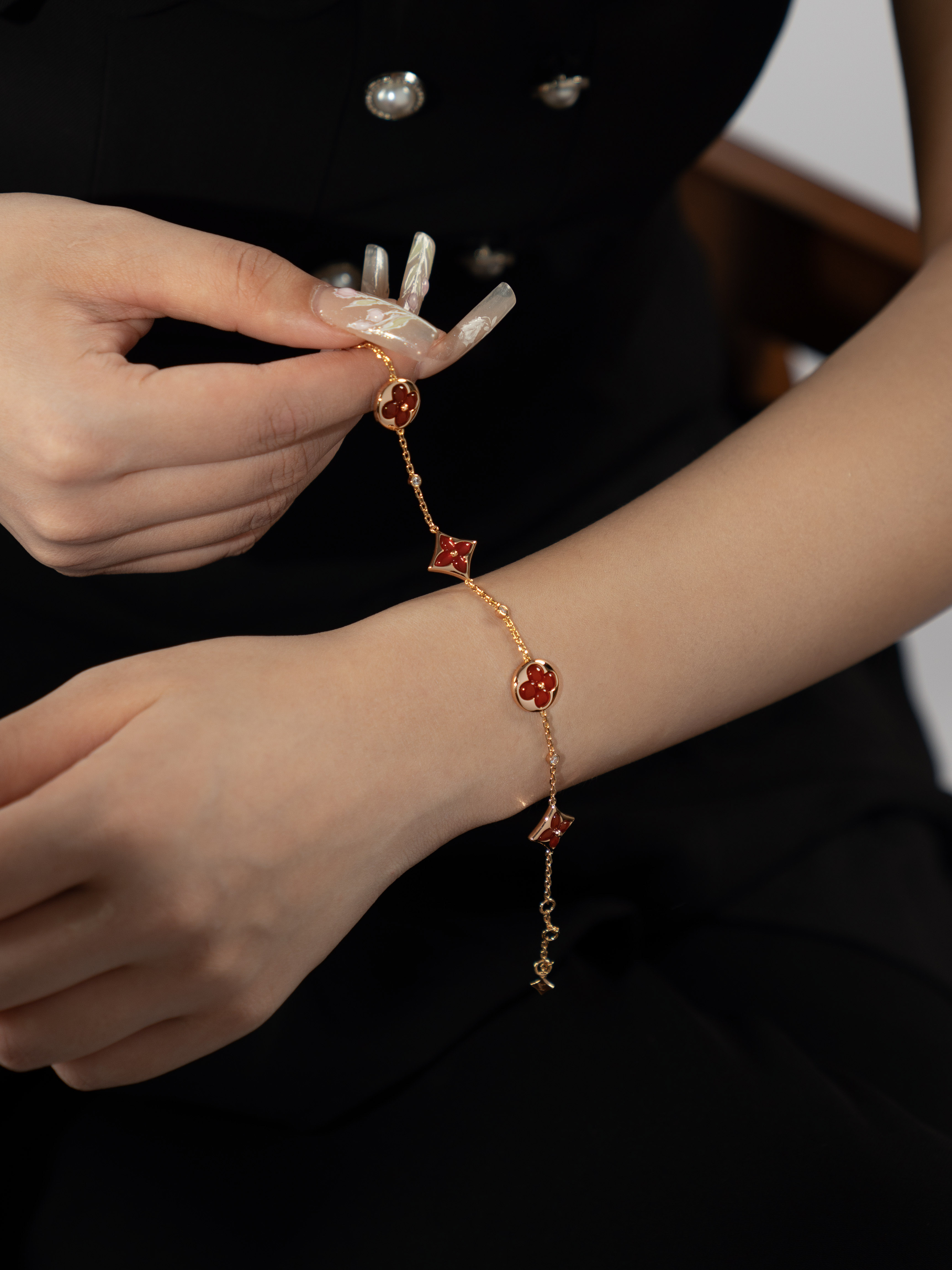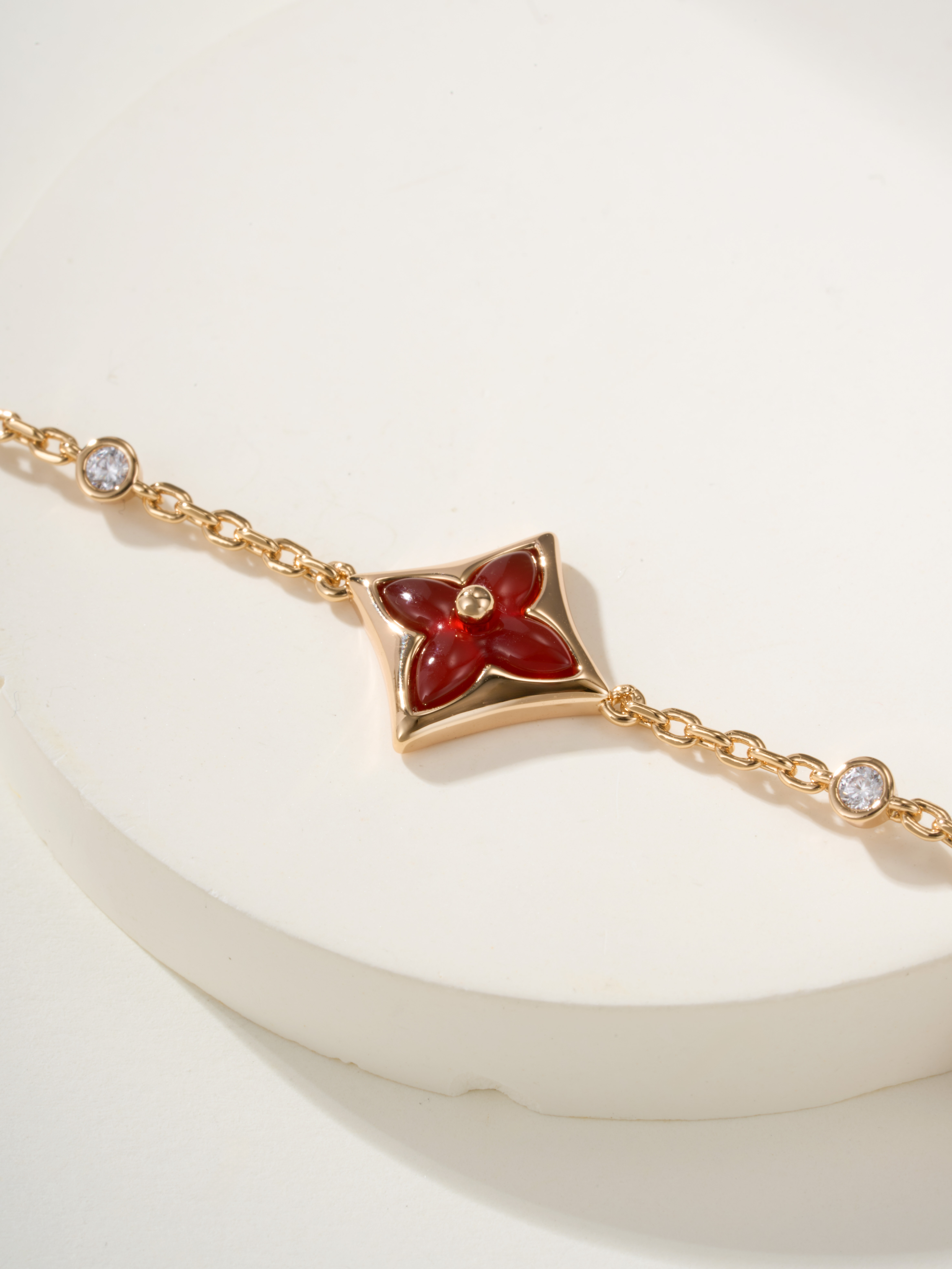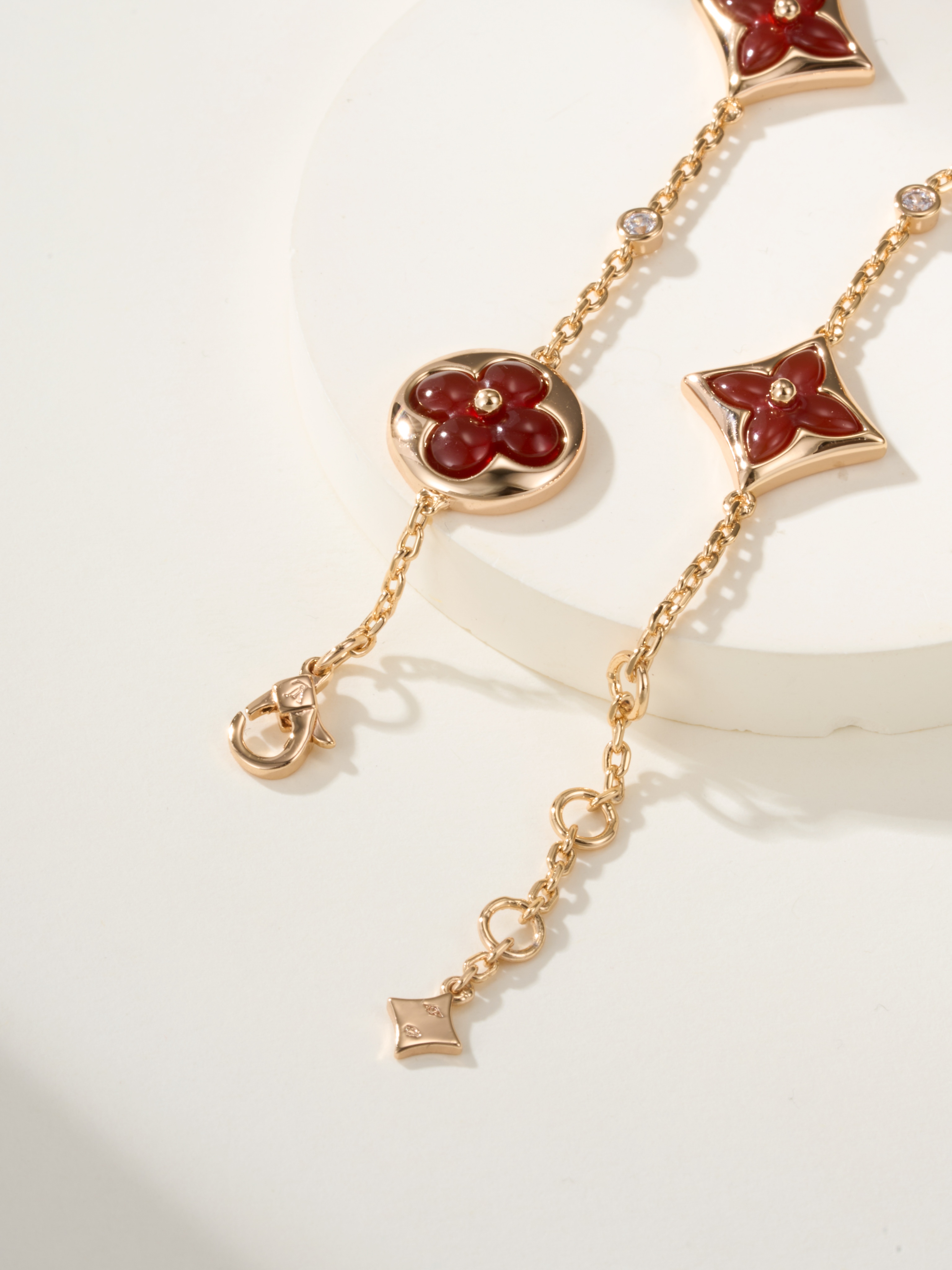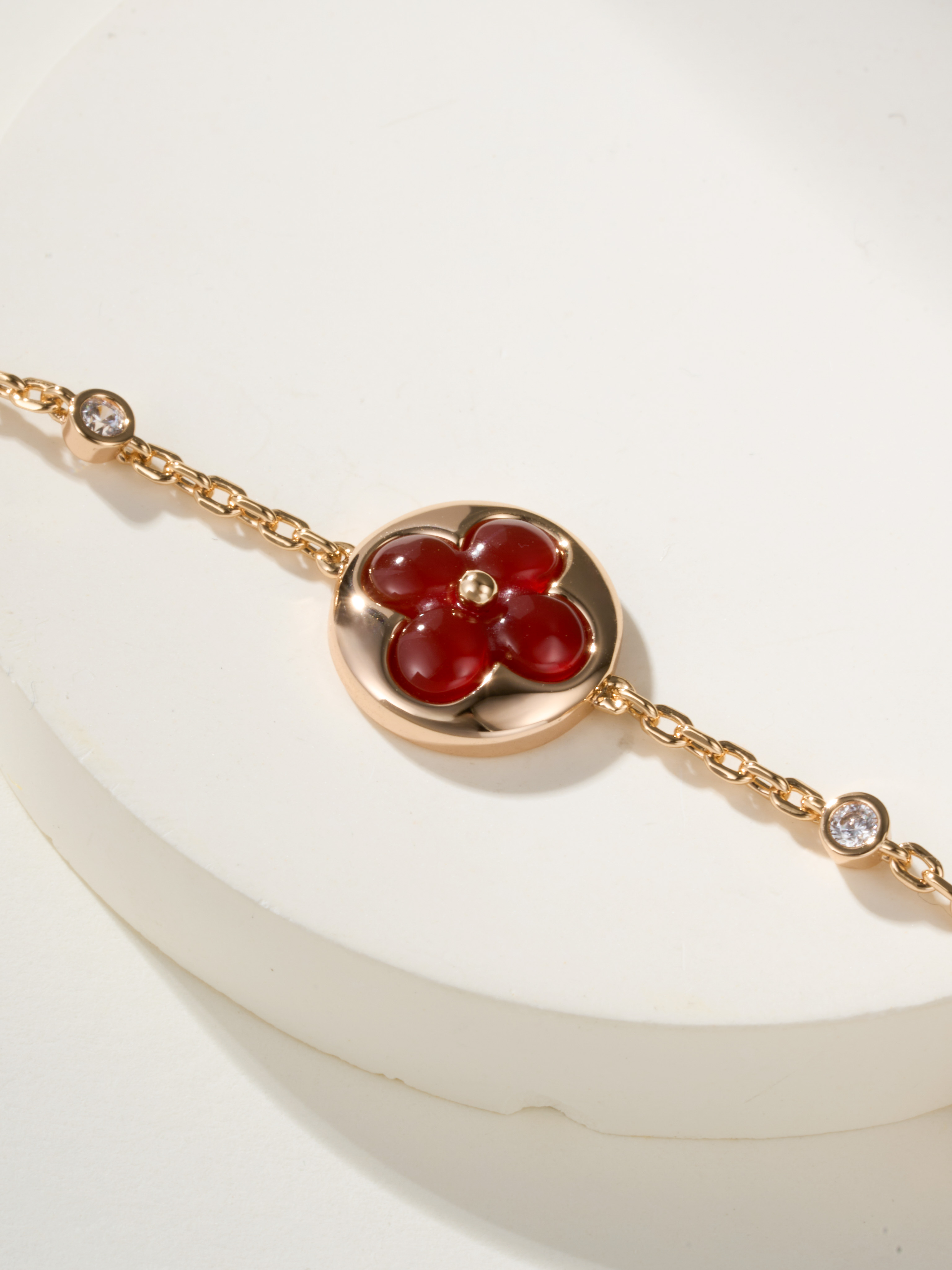 LV Classic Four Flower Ruby 3-Diamond Bracelet (Rose Gold Ruby)
