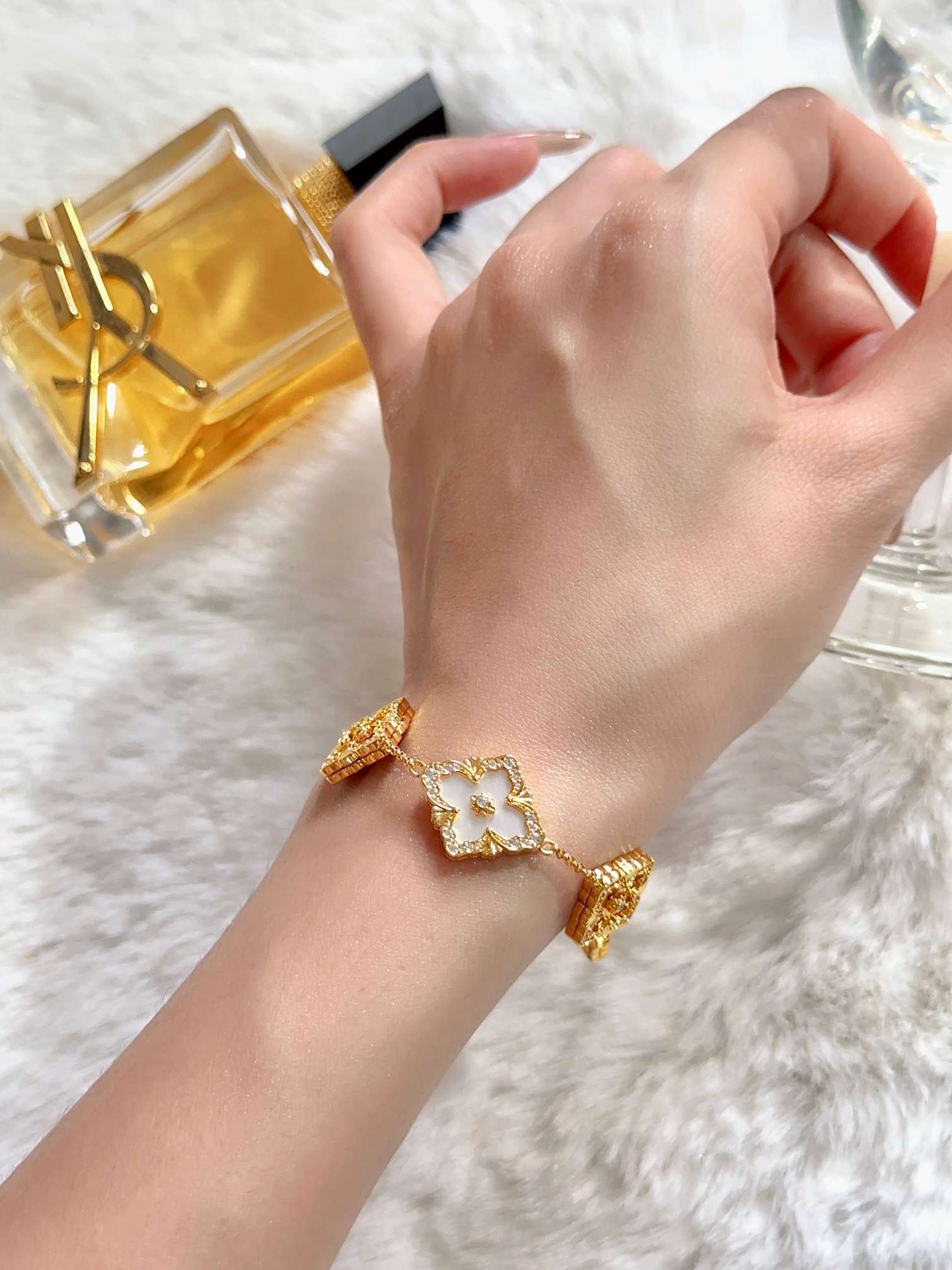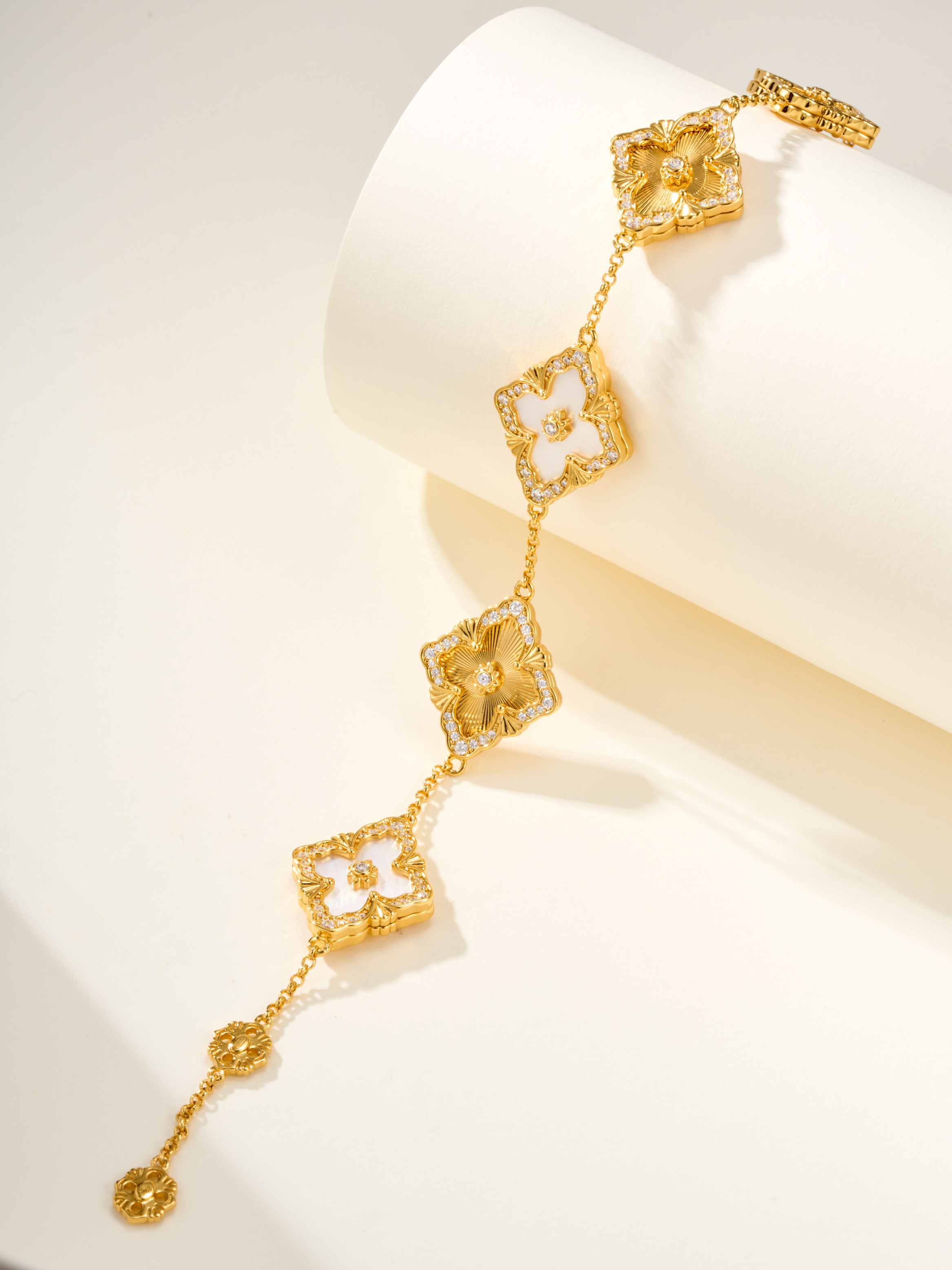 BU Opera Series Five Flower Diamond Set White Beimu Car Flower Bracelet (Large)
