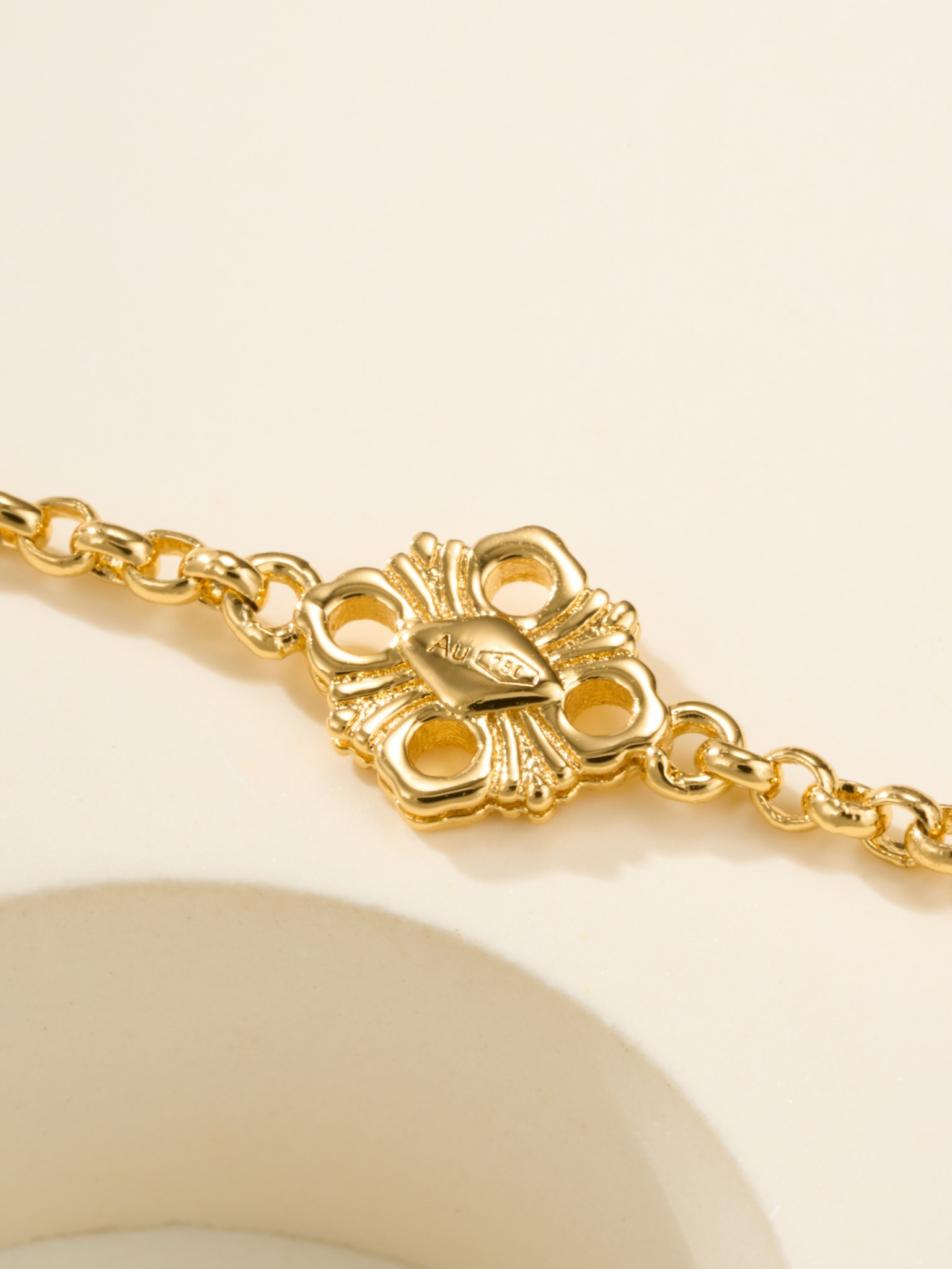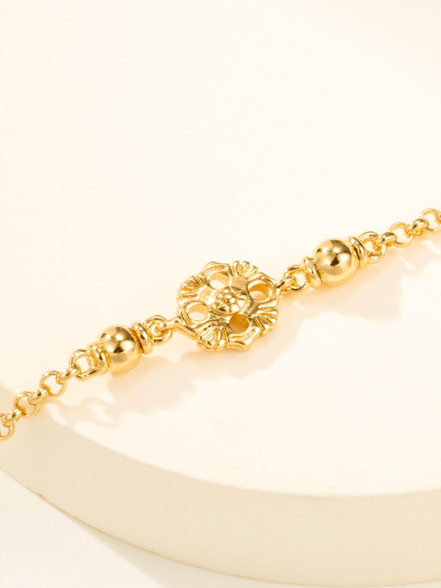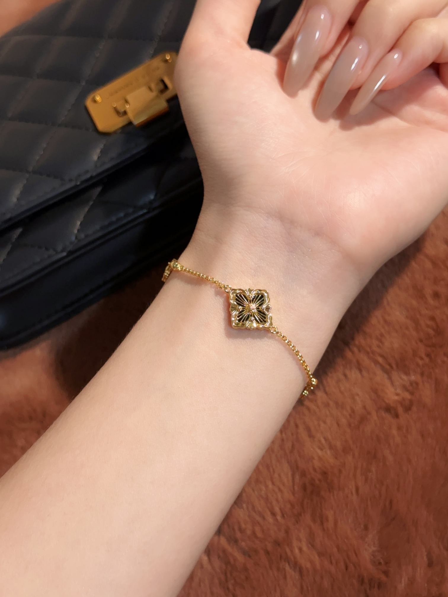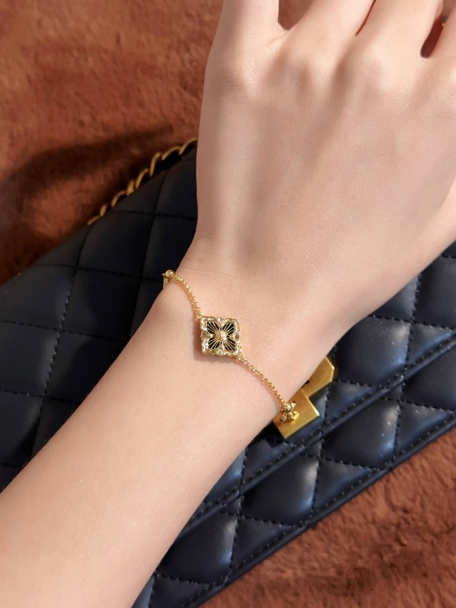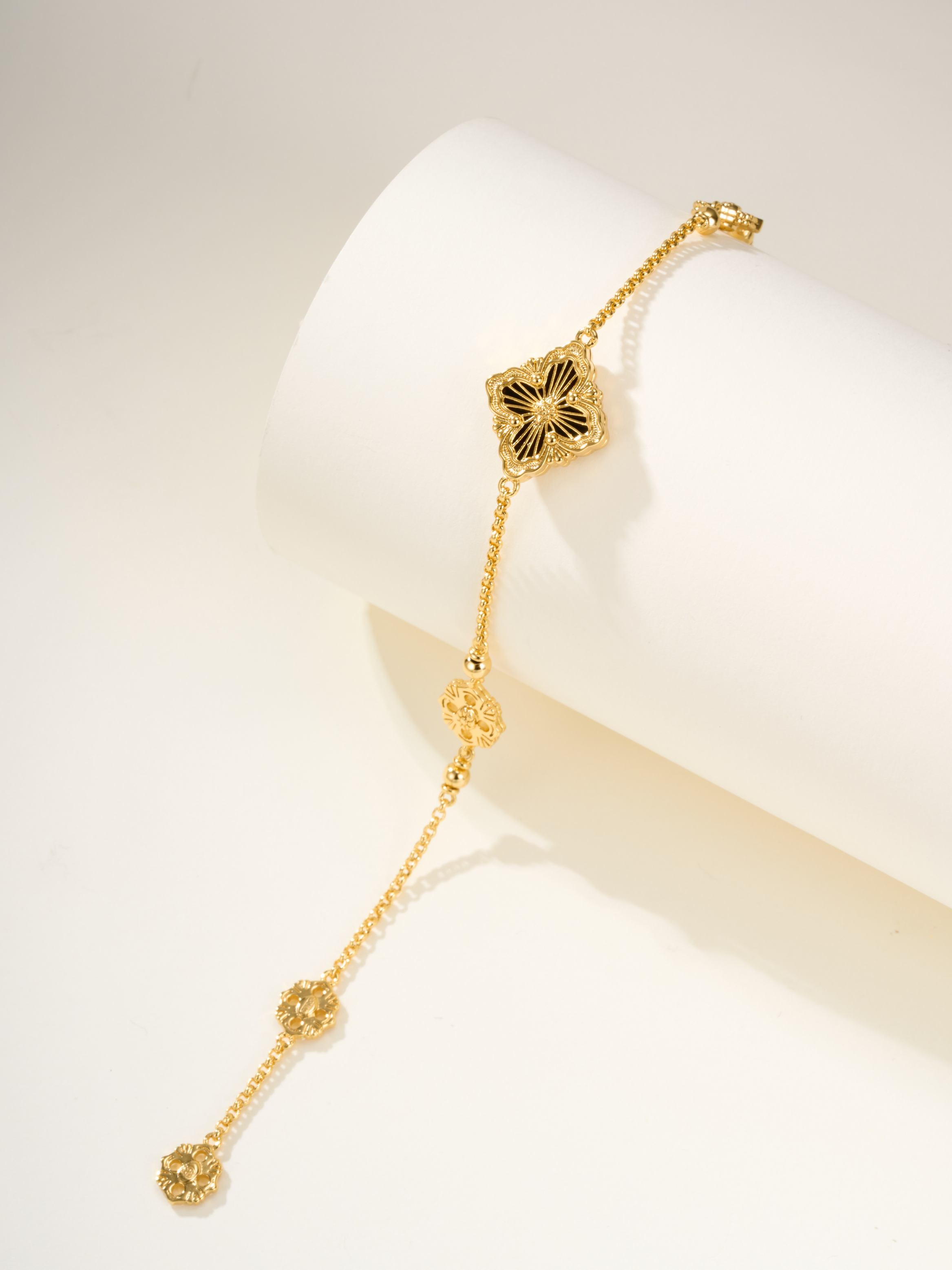 BU Opera Series Gold 3 Pattern Single Flower Agate Black Bracelet (Small)