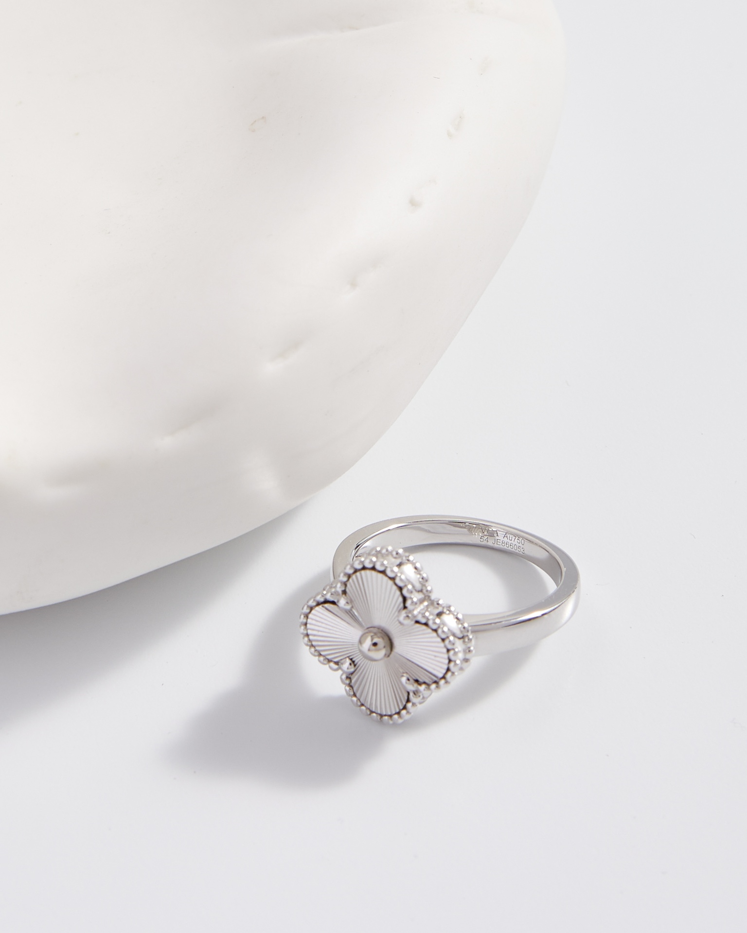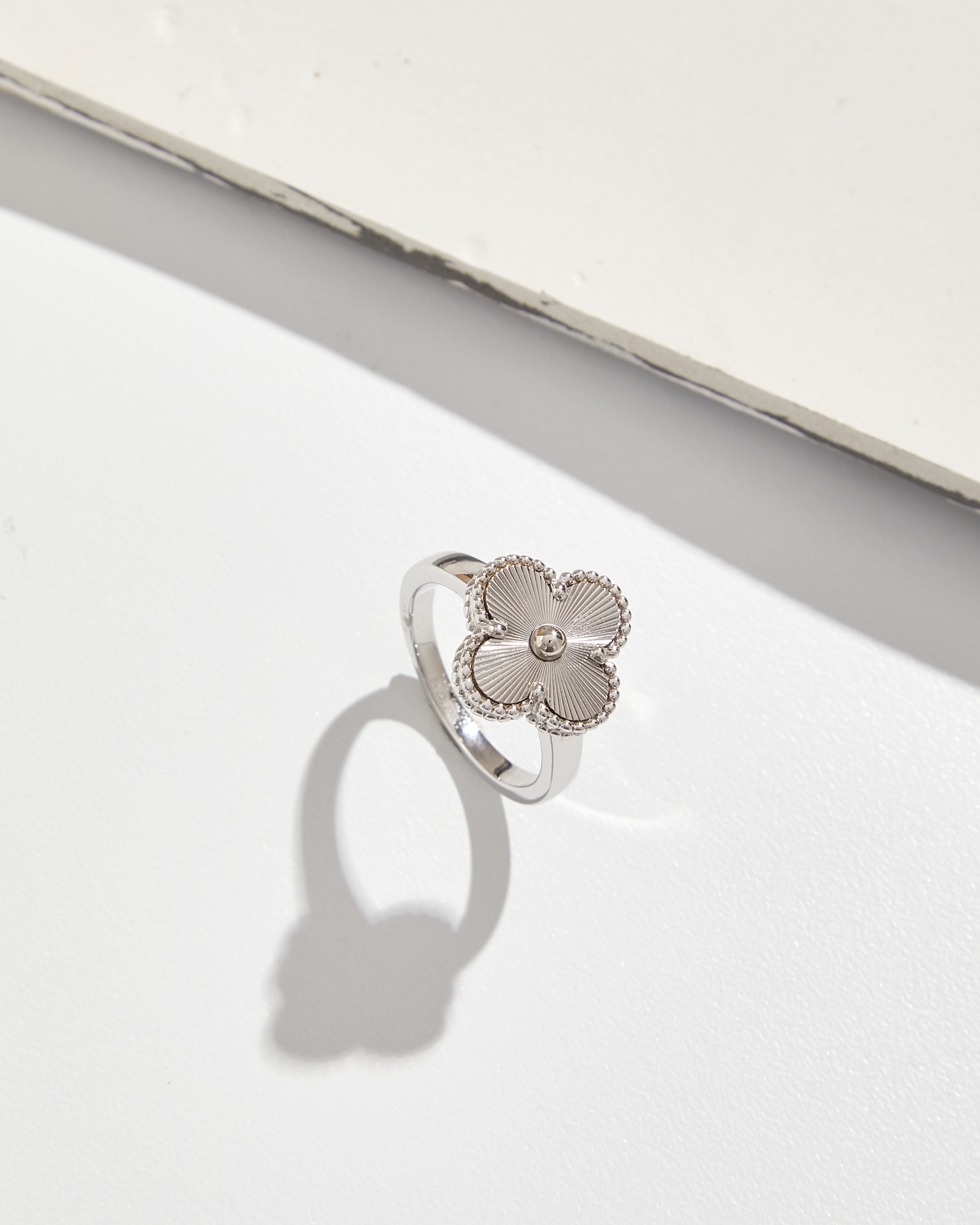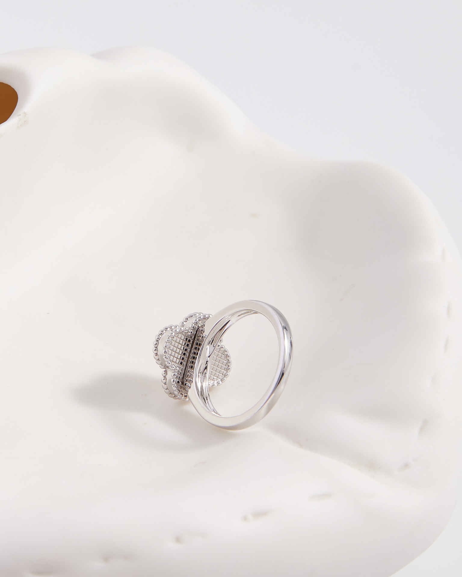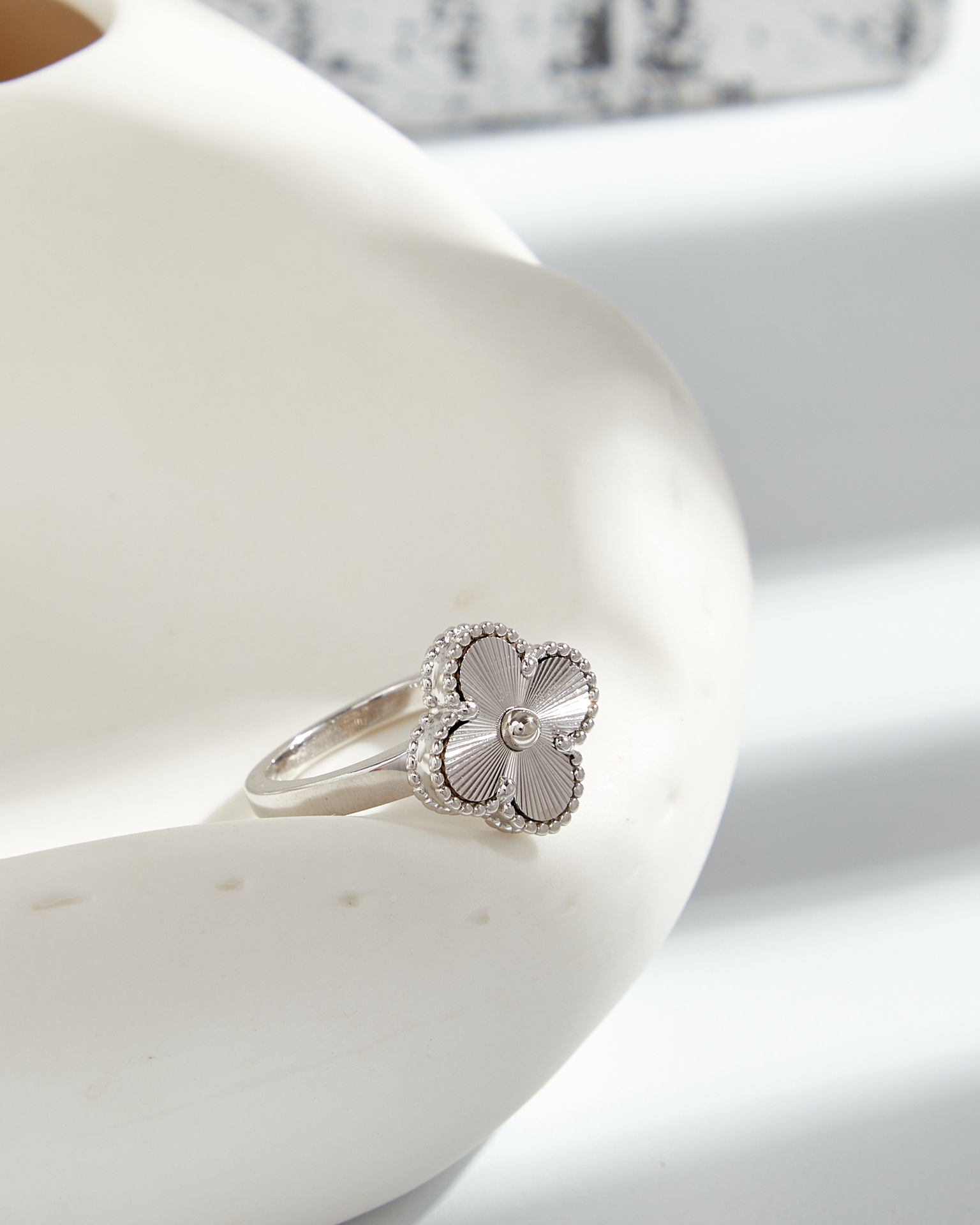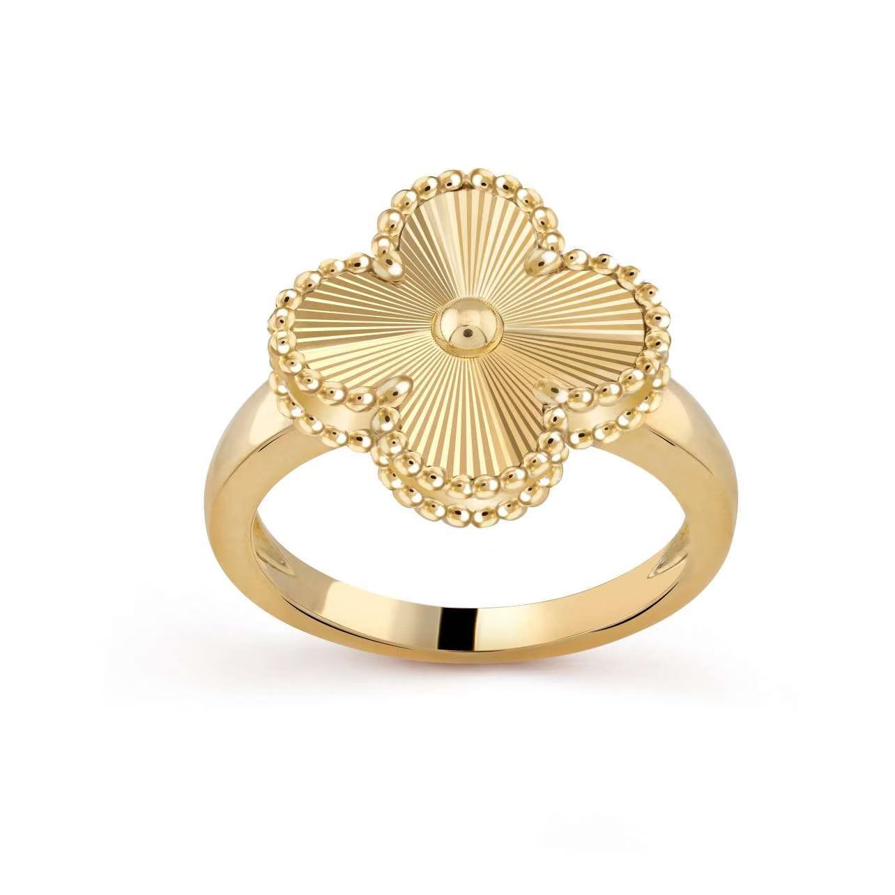 Carved four leaf clover ring