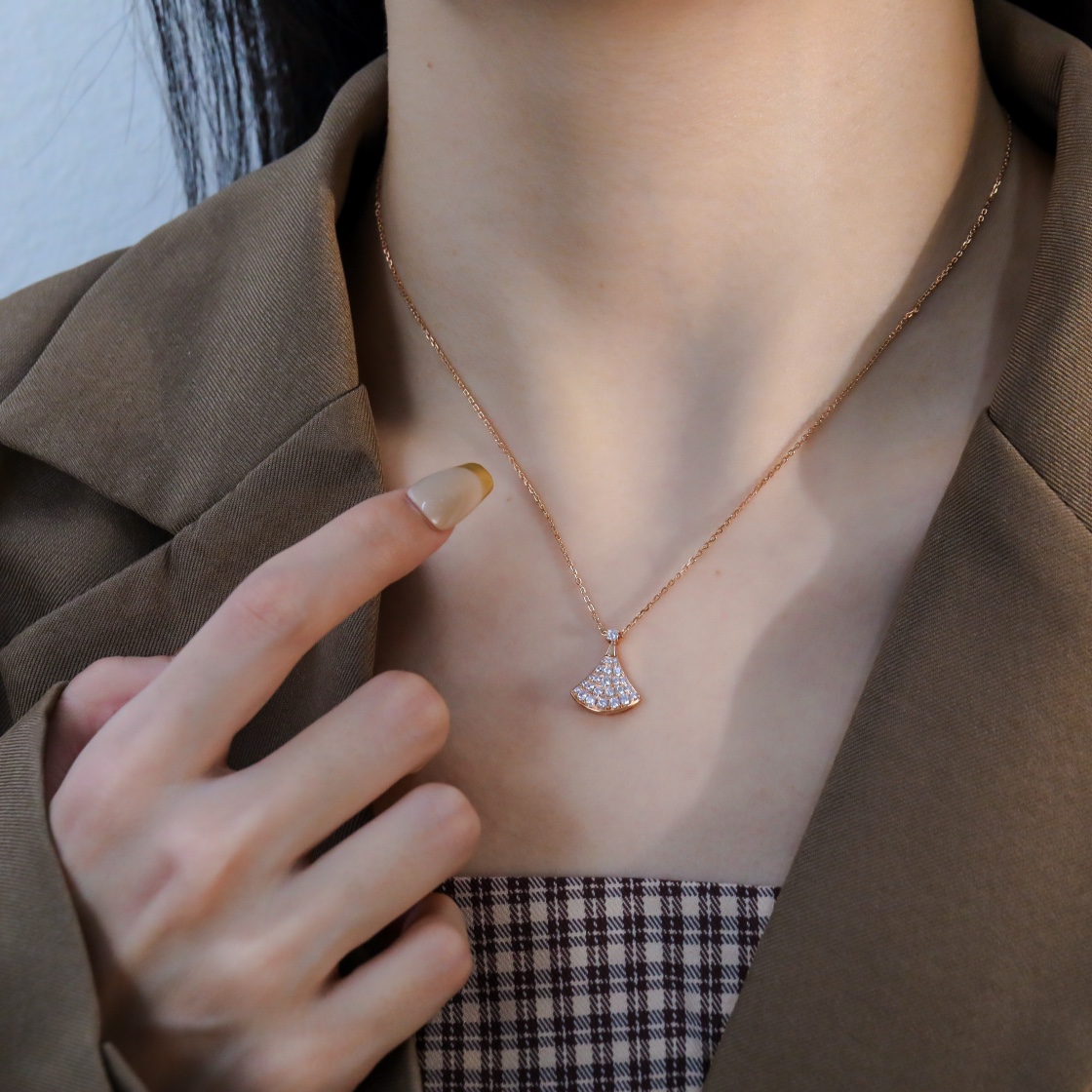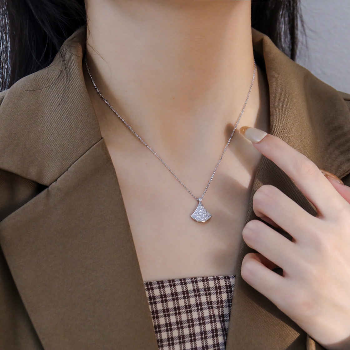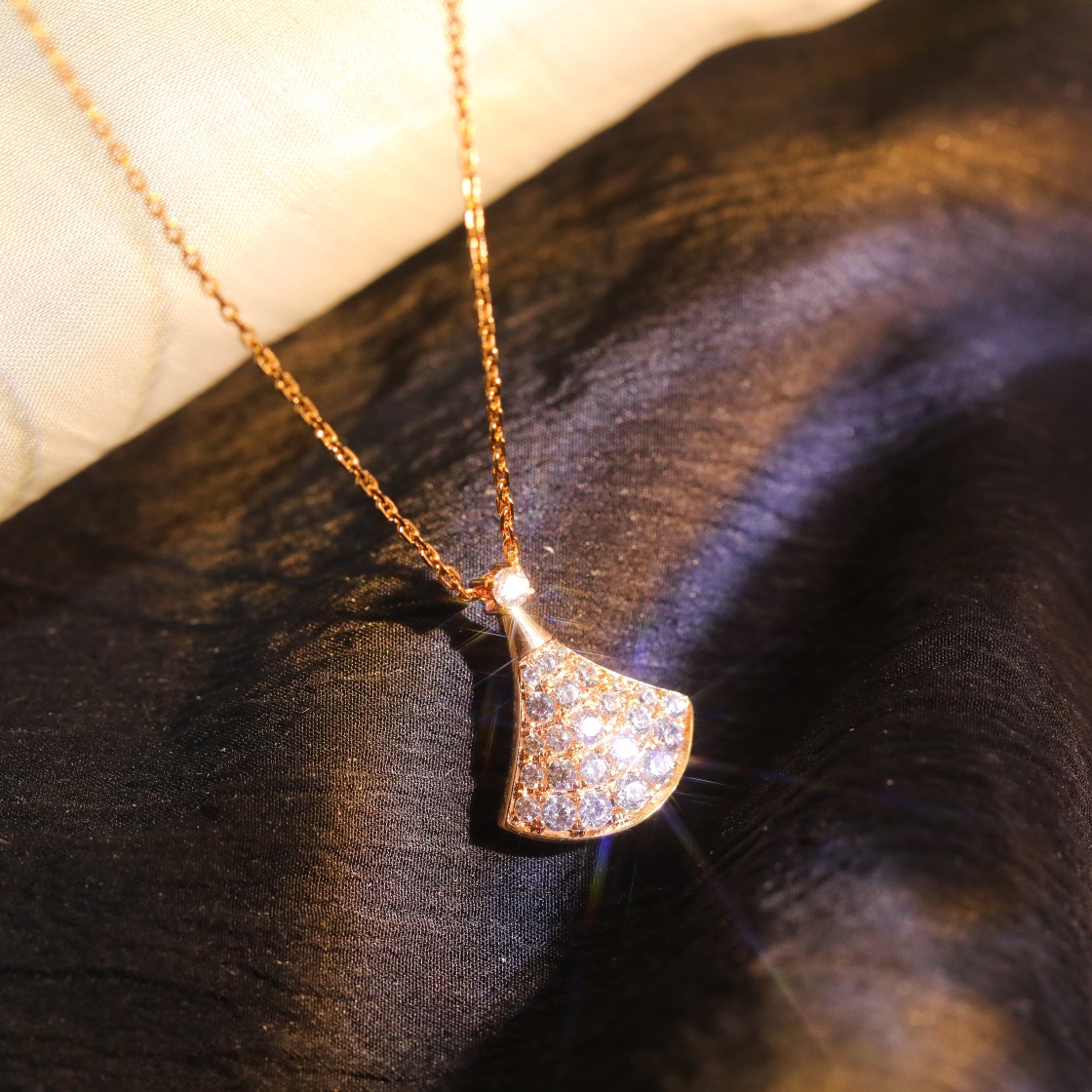 Classic old Divas small diamond studded fan necklace